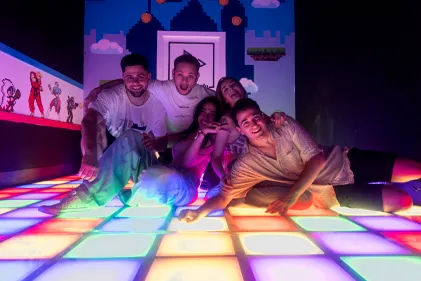 Un reto físico-divertido en equipo: un suelo interactivo lleno de baldosas de colores donde tendréis que moveros, saltar, reír y superar niveles. Ideal para grupos que quieren acción, risas y dinámica de colaboración y competición real.
